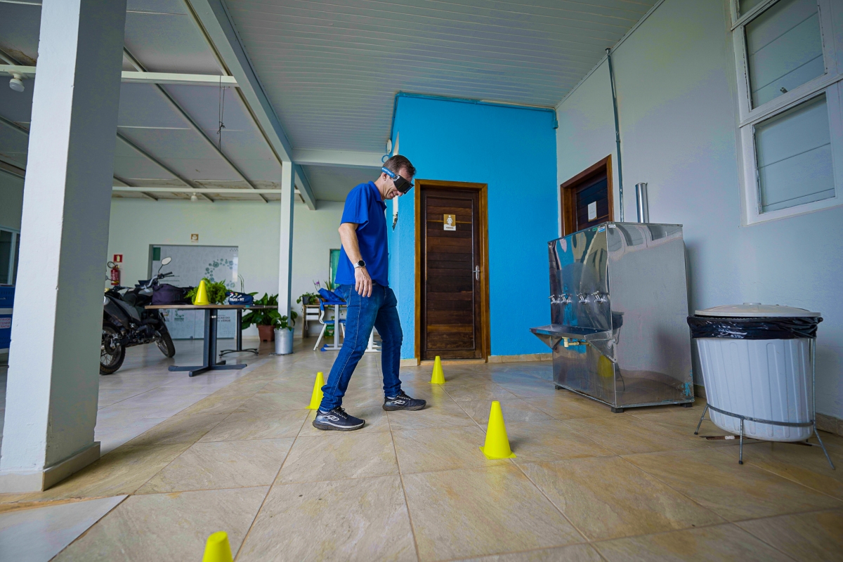 Durante a atividade, os servidores participaram de uma dinâmica com óculos de simulação de embriaguez, que distorcem a visão e alteram a percepção de distância. A proposta foi caminhar até o final de um percurso, desviando de obstáculos, para demonstrar na prática, os efeitos da embriaguez na condução.