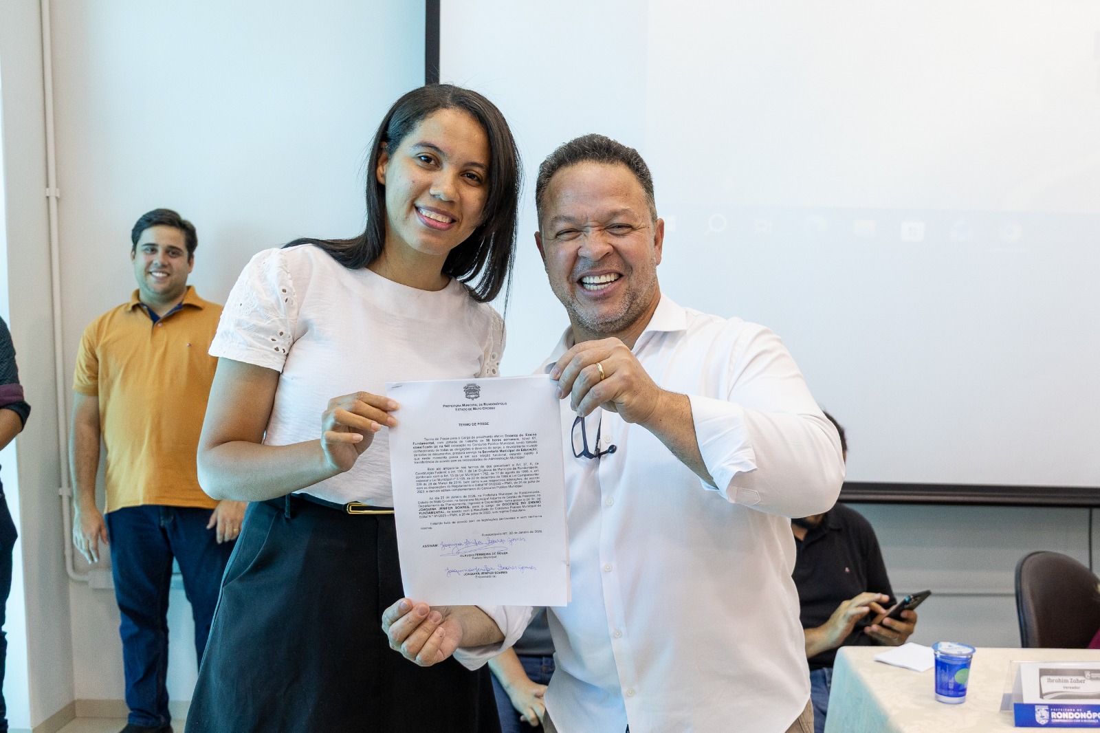 A posse também foi prestigiada por outras autoridades, como a primeira-dama e secretária Alessandra Ferreira, o secretário de Administração, Luciano Rodrigues, os vereadores Ibrahim Zaher e Vinícius Amoroso, além de profissionais da gestão municipal.
