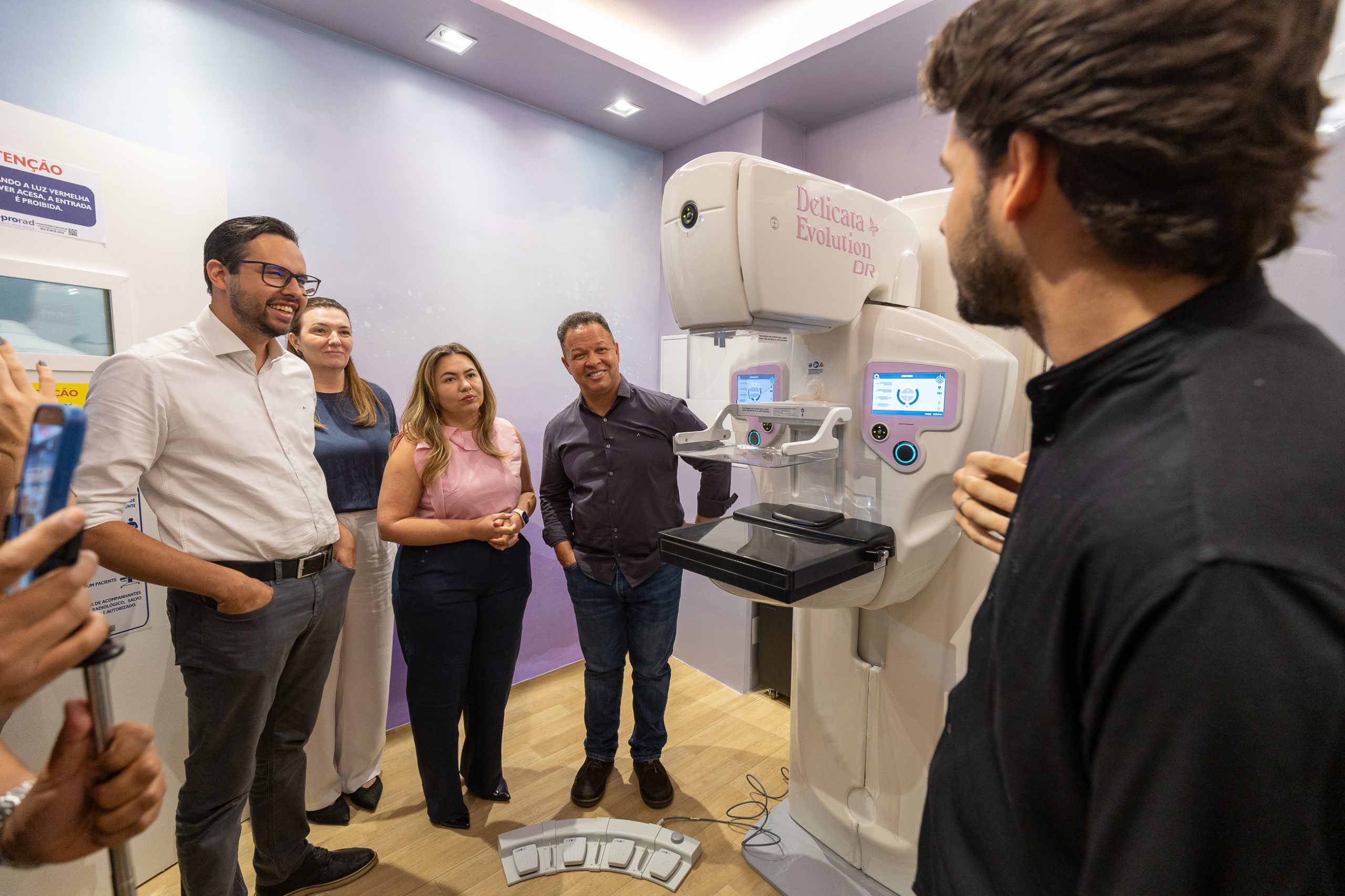 O aparelho foi instalado em um sala pensada especialmente para acolher as mulheres durante o exame. O local foi decorado com papel parede com cores que trazem calma e tranquilidade, tem iluminação aconchegante e também micro lâmpadas no teto que simulam estrelas no céu. O secretário de Saúde, Mykaell Vitorino comentou que a ideia da sala temática surgiu após a visita de uma comitiva da Prefeitura em Barretos (SP), onde conheceram a estrutura do Hospital do Amor, referência no tratamento de câncer no Brasil. “Agora com o novo mamógrafo, que é da rede pública municipal, o objetivo é que reduza o tamanho da fila de espera e consigamos fazer o diagnostico precoce”, afirmou.