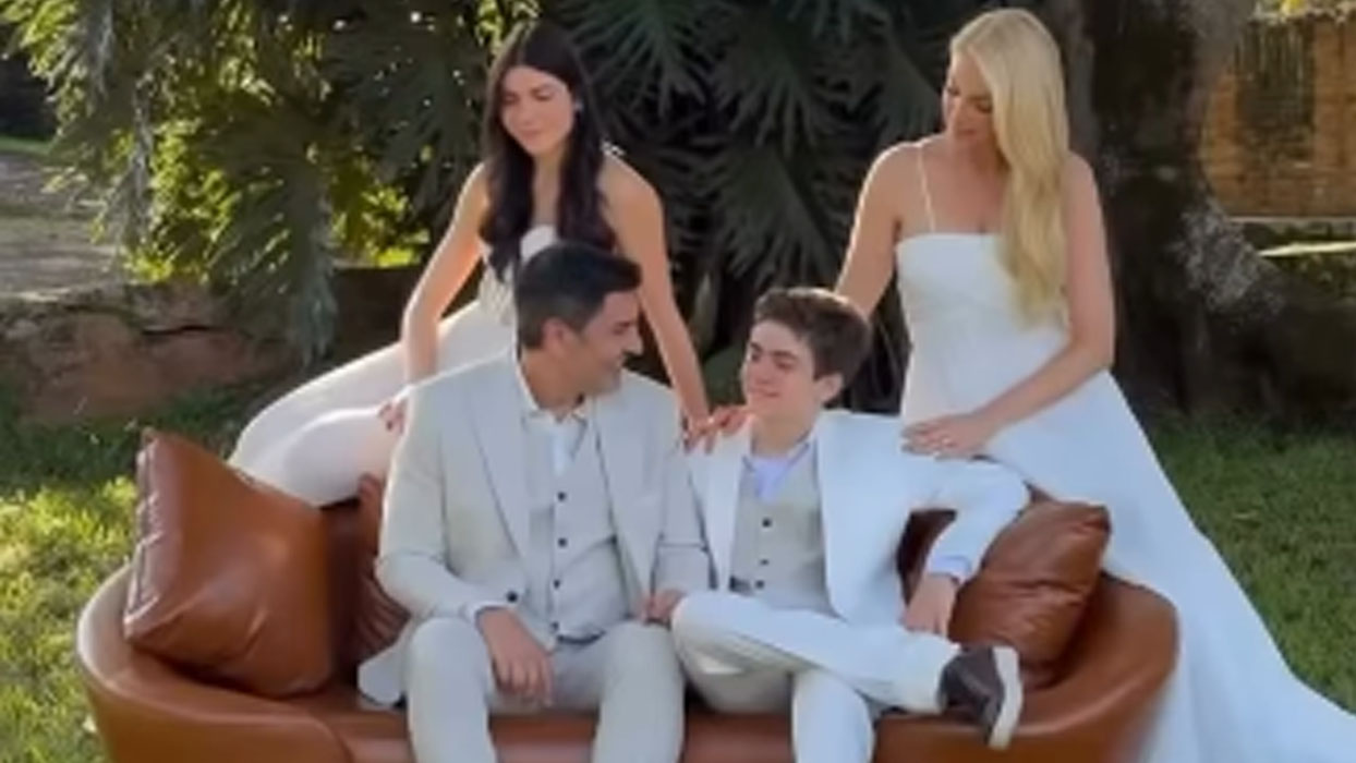 Ana Hickmann, de 45 anos, e Edu Guedes, de 51, aproveitaram o domingo (22), para realizar um ensaio pré-wedding ao lado dos filhos na fazenda da família. O casal, que já tem casamento marcado para setembro, reuniu Maria Eduarda, de 17 anos, e Alezinho, de 11, em um dia especial na Casa Gialla di Ana Edu, propriedade que será palco da cerimônia.