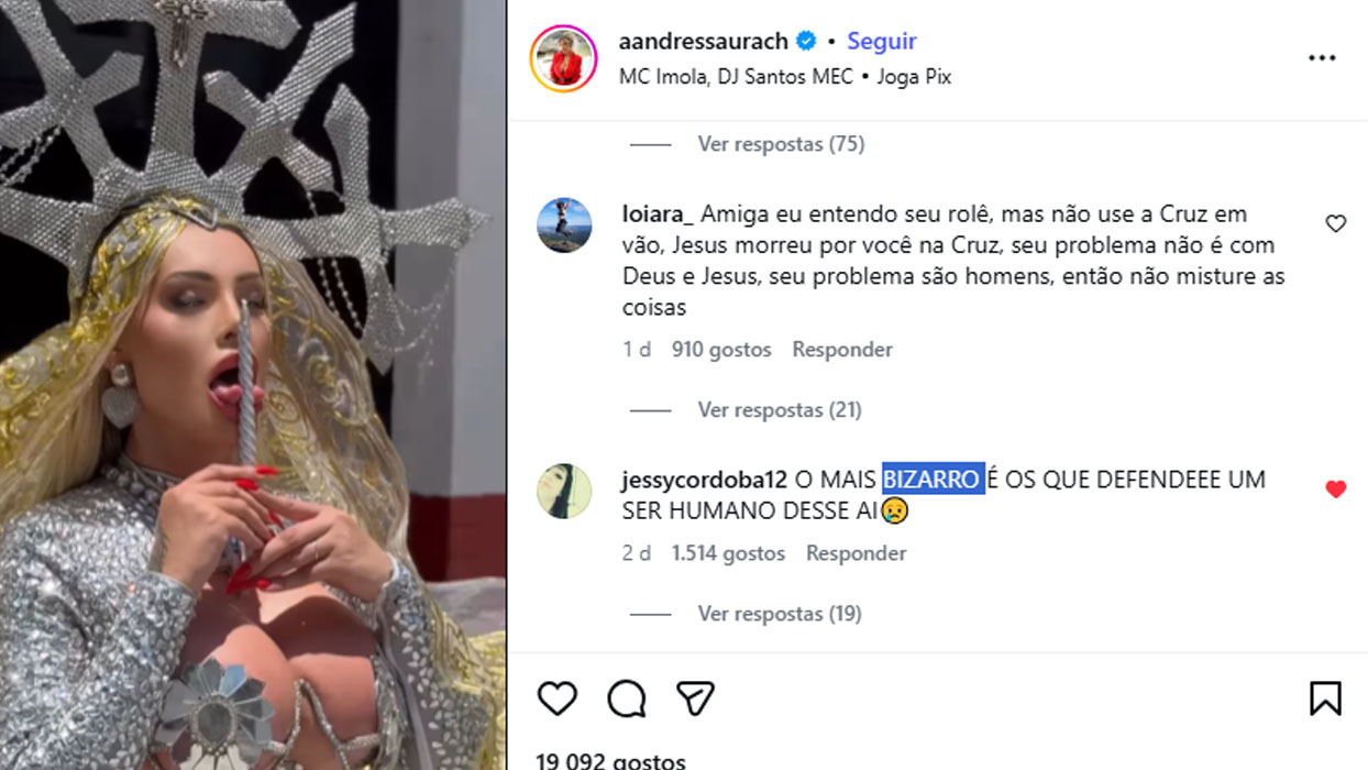 O post Andressa Urach se fantasia de Maria Madalena e é criticada: ‘BIZARRO ‘ apareceu primeiro em TOP FAMOSOS.