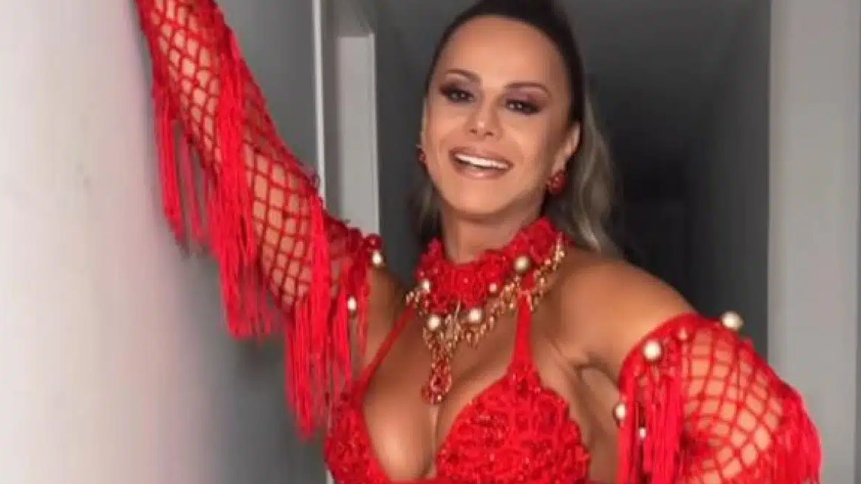 Viviane Araújo prestigia ensaio no Morro do Salgueiro e samba com aprendizes: ‘Folia’