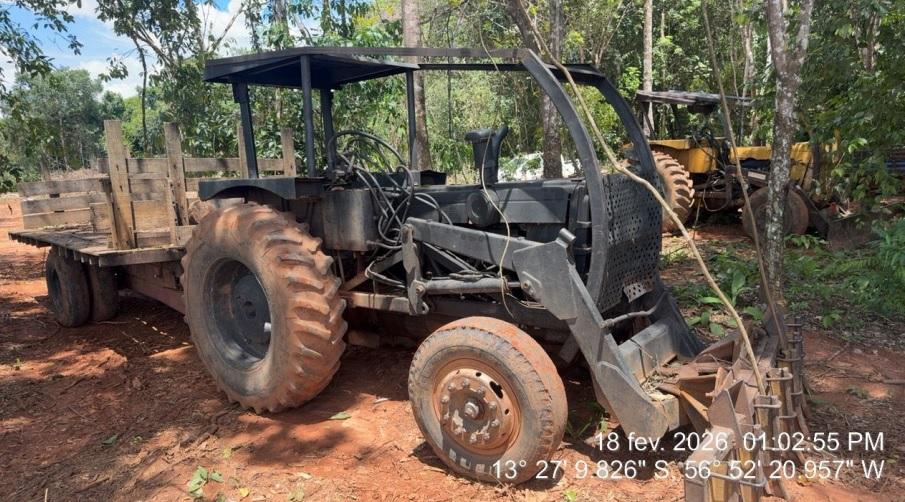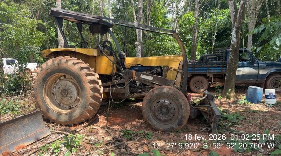 Policiais da 5ª Companhia Independente de Polícia Militar de Proteção Ambiental apreenderam, nesta quarta-feira (18.2), dois tratores, uma caminhonete e cinco motosserras, em São José do Rio Claro (296 km de Cuiabá). Um homem, de 46 anos, foi detido em flagrante por crime ambiental.