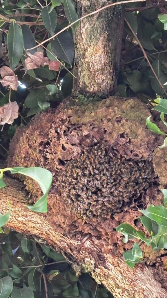 A equipe do 5º Batalhão de Bombeiros Militar (5º BBM) foi acionada via 193, após a solicitante relatar a presença de um grande enxame de abelhas no local.