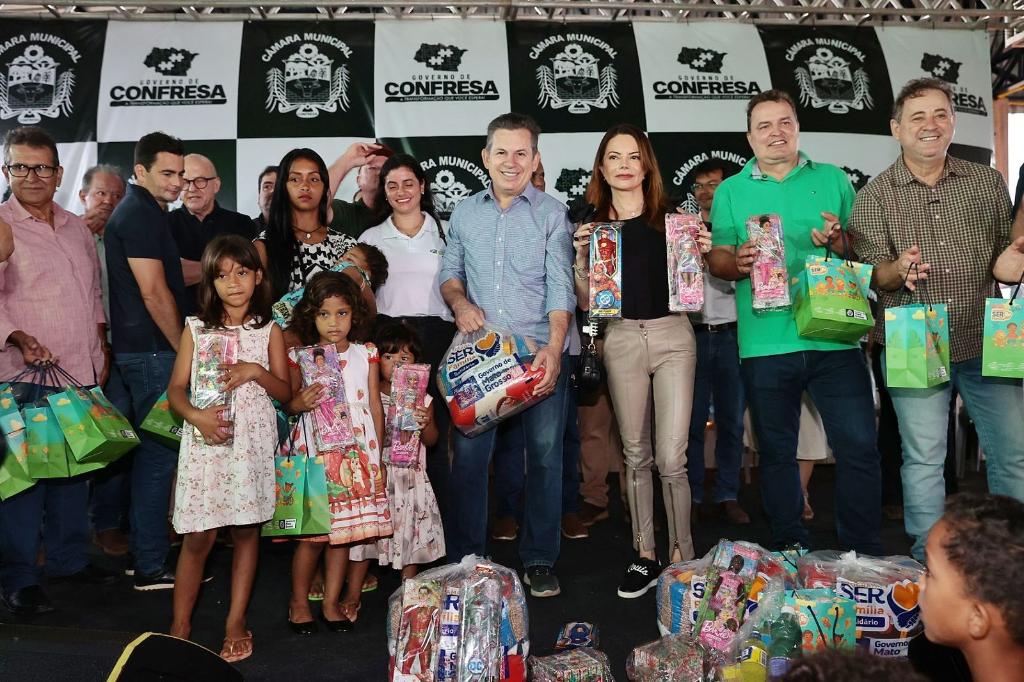 Os convênios também contemplam a entrega de máquinas para a agricultura familiar, o asfaltamento de ruas e avenidas, e obras de duplicação e drenagem na MT-430. A população ainda recebeu, durante a visita da comitiva estadual, cestas básicas, brinquedos e kits de higiene entregues pelo programa SER Família Solidário.