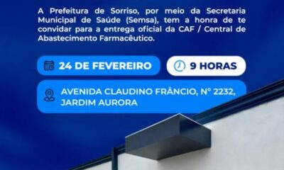 A Prefeitura de Sorriso, por meio da Secretaria Municipal de Saúde (Semsa), promove nesta terça-feira (24), às 9 horas, a entrega oficial da CAF – Central...